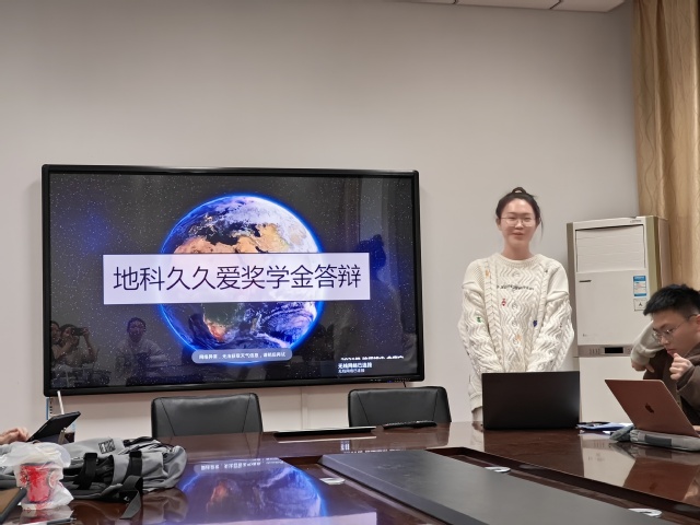 2024 年3 月27 日中午,地科久久爱心奖学金答辩在 A205 会议室举行。会议邀请 99 级校友代表杨涛,地科院学工组毛予倩、陈昕、白若蓉出席会议。学院 12 名本科生参与评选,先后分享自己入学以来,在思想、性格、学业、科研、文体活动、志愿服务等各个方面的成长与进步。