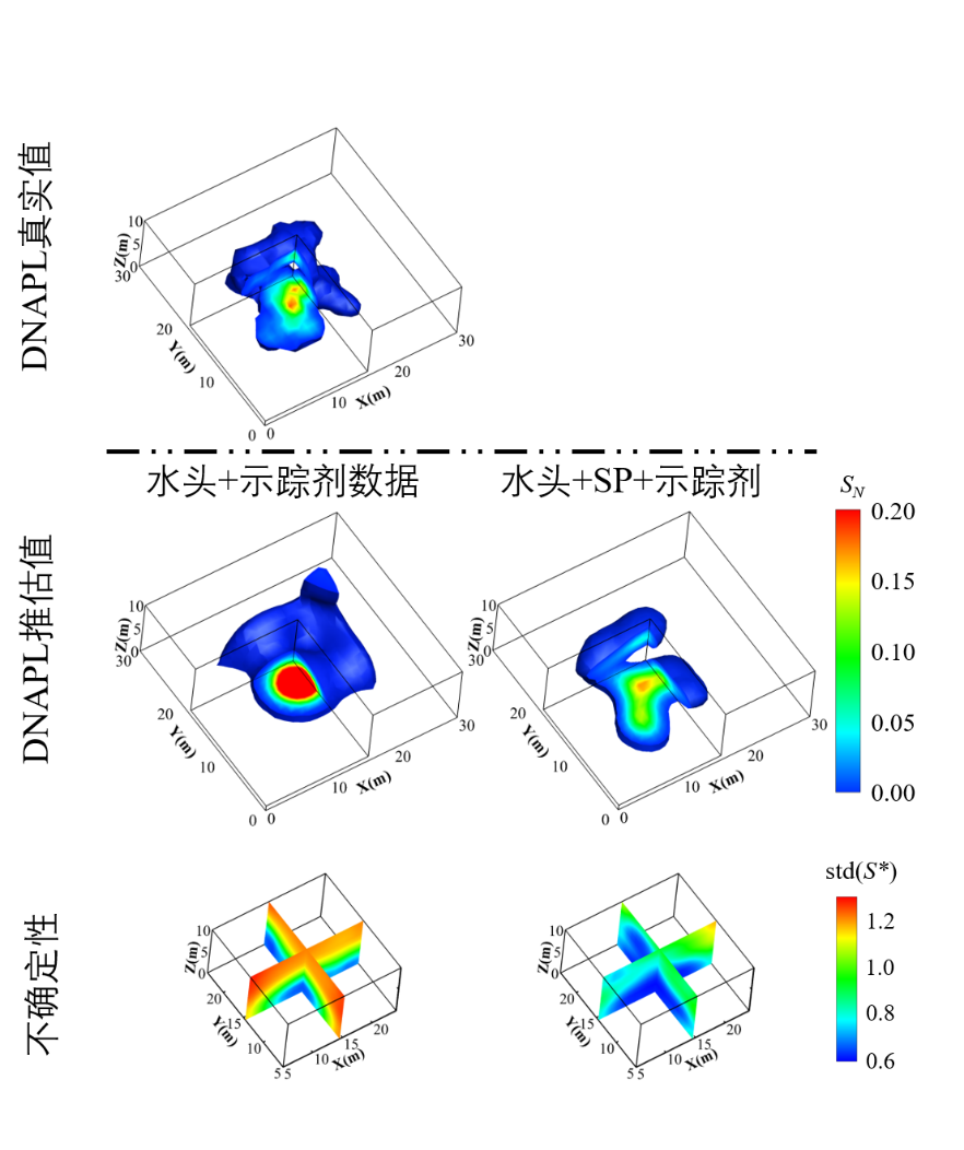 上述研究成果以“Improved characterization of DNAPL source zones via sequential hydrogeophysical inversion of hydraulic-head, self-potential and partitioning-tracer data”2020年7月发表于水文学顶级期刊《Water Resources Research》,博士研究生康学远为第一作者,施小清教授和吴吉春教授为共同通讯作者,pg电子官方网站为第一署名单位。本研究获得了国家重点研发计划(2018YFC0406402),国家自然科学基金(41730856,41672229)和国家留学基金委的联合资助。