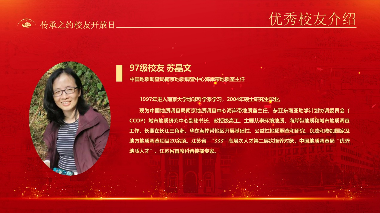 97级校友 中国地质调查局 南京地质调查中心 海岸带地质室主任苏晶文