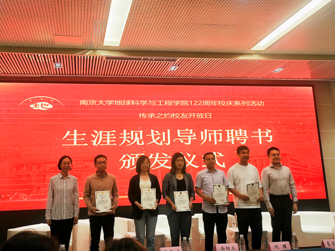 在之后的生涯规划导师聘任仪式上,唐健副主任和董婷书记为五位校友颁发学生生涯规划导师聘书。