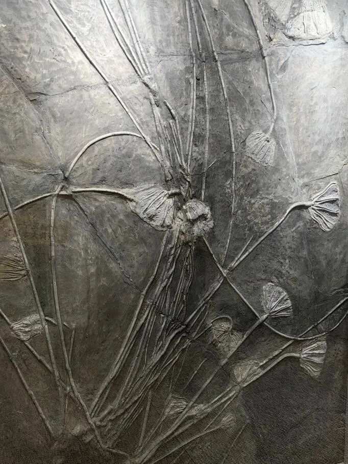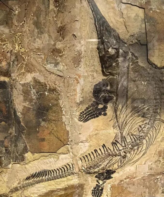 大型新中国龙化石展列在本馆的中央醒目位置,由pg电子官方网站前校长蒋树声题名。两旁是一些珍贵的同时代的贵州鱼龙和海百合、以及30多种同时代鱼类化石展柜,辅以国际地层年代表(2023)和盛产大型动物化石的黔西南三叠纪生物群等展板介绍。