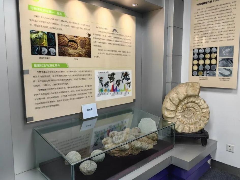 主要展列有西北大学捐赠的犀牛化石(高1.25米、长度3.2米)、“九龙壁”化石、澄江动物群化石、脊椎动物化石、显生宙各种生物化石等,配以地球演化与生命事件、生物演化基本概念、重要的生物演化(包括生命大灭绝)事件、以及前寒武纪的、早古生代的、晚古生代的、中生代的、新生代的生物介绍展板。许多珍贵化石是由毕业于上世纪70年代和80年代的校友捐赠的。