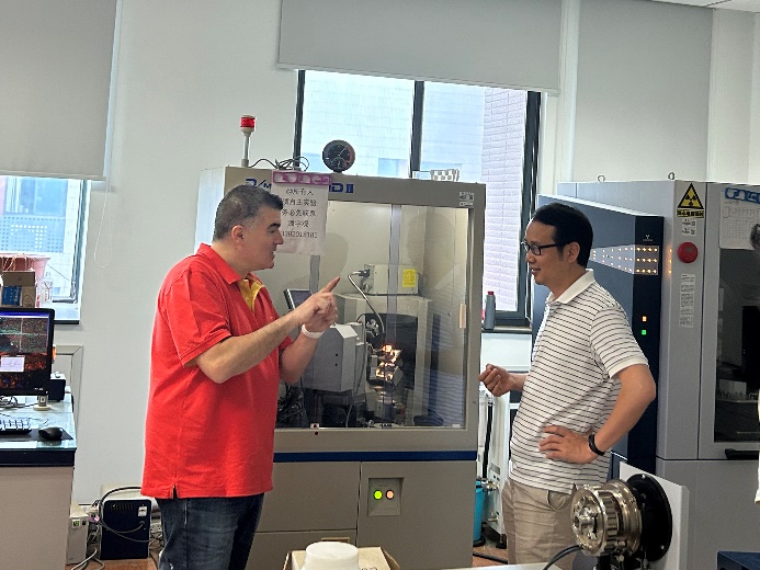 Nestola教授与李伟强教授就X射线衍射技术进行交流
