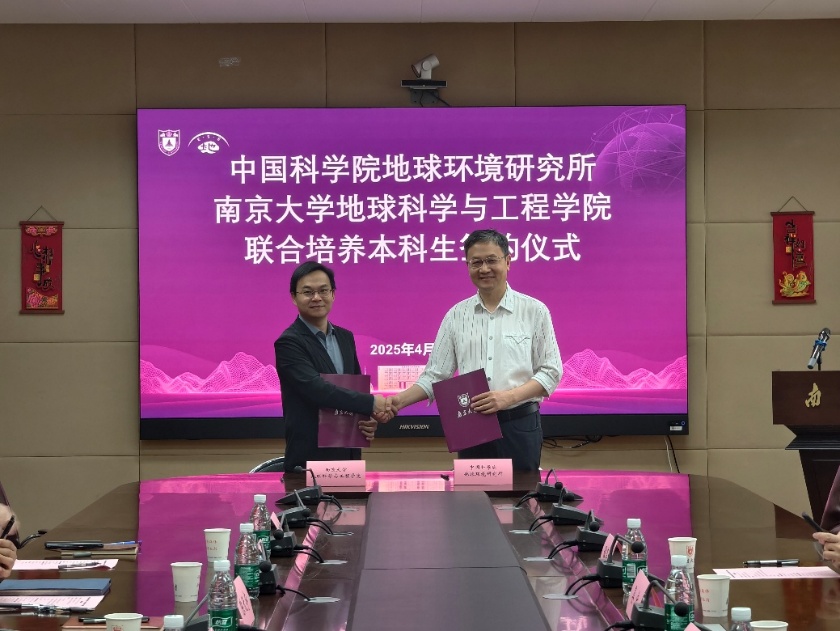 2025年4月28日上午,中国科学院地球环境研究所(以下简称“地环所”)与pg电子官方网站在仙林校区朱共山楼签署校所联合培养本科生合作协议,并进行座谈交流。参会人员主要包括地环所党委副书记、副所长金章东,副所长晏宏,人事教育处处长谭亮成,重大任务办公室副主任蓝江湖;地科院党委书记董婷,院长陈天宇,副书记毛予倩,副院长唐朝生,副院长王小林,院长助理李伟等。