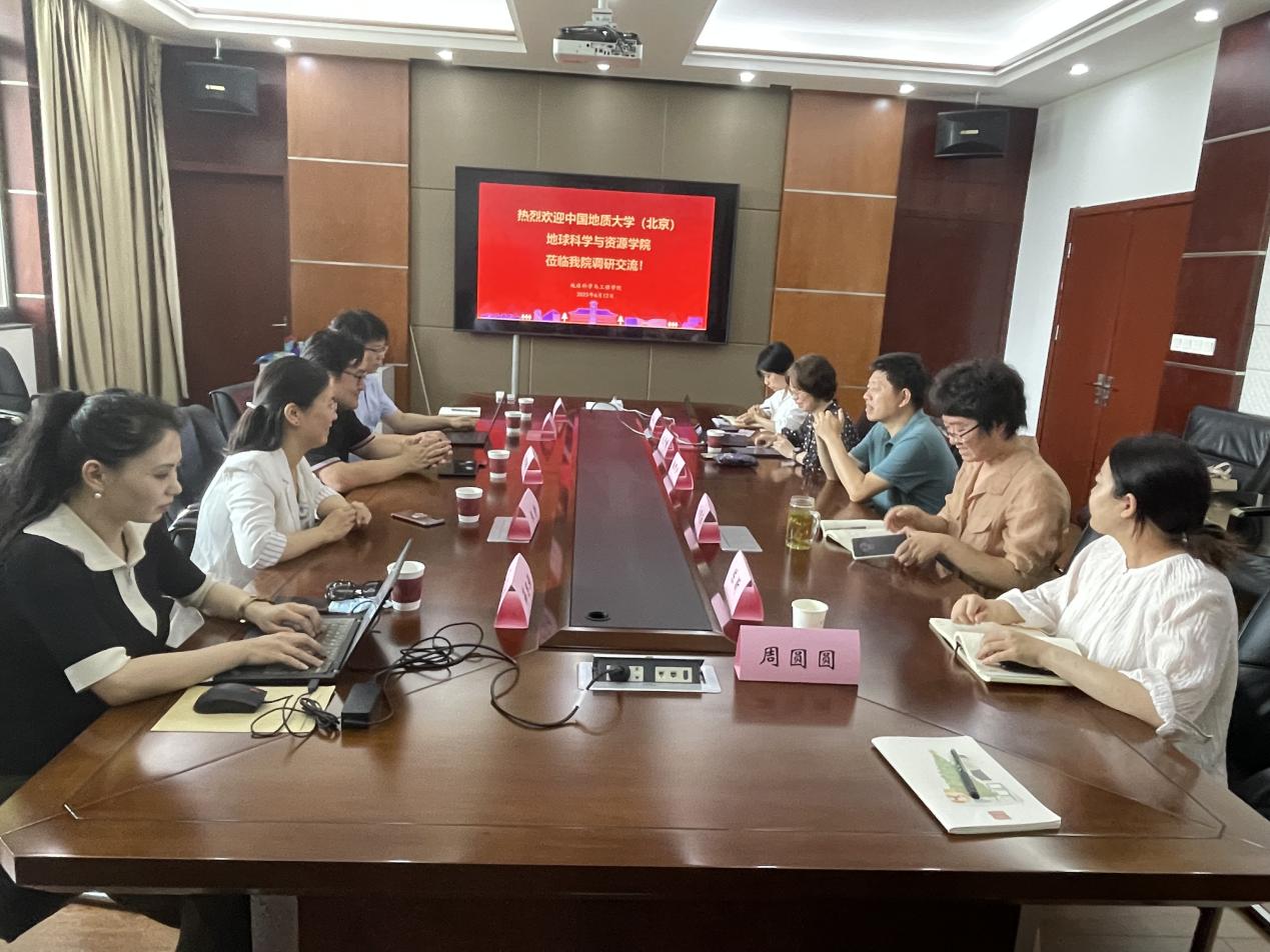 为深入贯彻习近平新时代中国特色社会主义思想主题教育调查研究工作,6月12日上午,pg电子官方网站与中国地质大学(北京)地球科学与资源学院开展主题教育调研交流会。