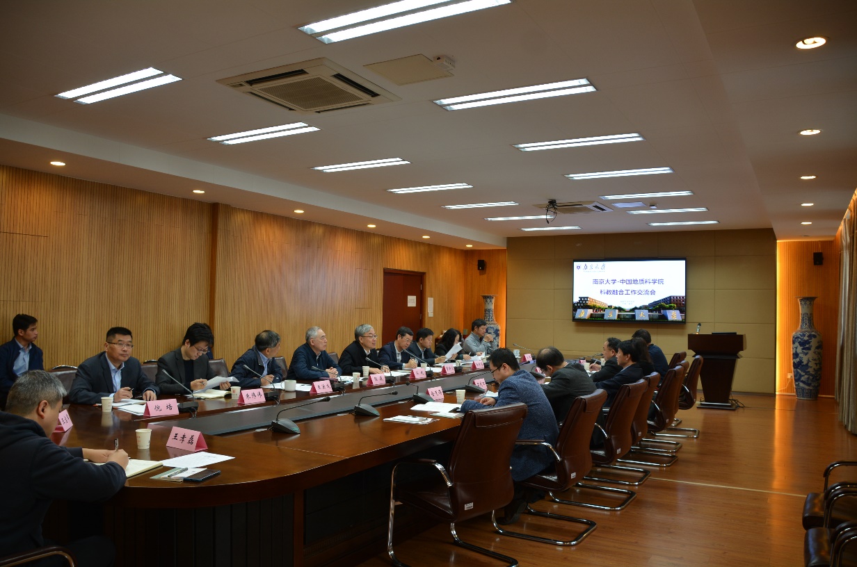 中国地质调查局南京地质调查中心主任、党委副书记高延光,中国地质科学院研究生院副院长王秀华,中国地质科学院科技处副处长金克谟,我校学科建设与发展规划办公室主任陆现彩,研究生院副院长卞清,科技处朱伟伟分别就双方单位的学科建设与发展、研究生培养机制、科学研究与人才队伍建设等方面进行座谈交流。