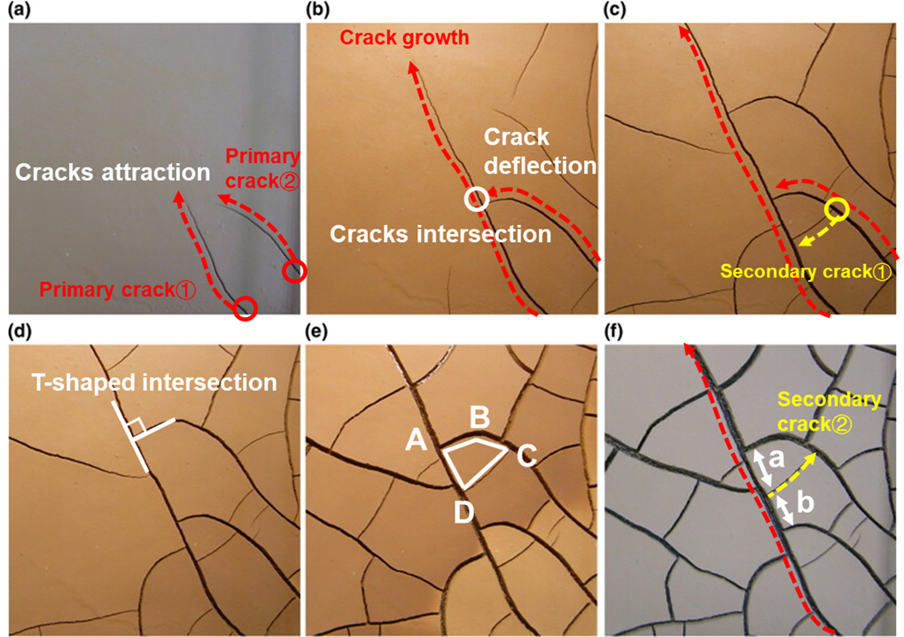 土体龟裂是干旱气候作用下的一种十分常见的地质现象。这种由土体失水收缩产生的裂隙网络会显著破坏土体结构完整性,降低其力学强度,进而引发边坡失稳、地基承载力下降、土体退化、填埋场污染物泄漏等一系列工程地质与生态环境问题。掌握土体裂隙网络几何形态的发育规律和演化特征,对工程地质防灾减灾和生态环境保护具有重要的现实意义。然而由于缺乏完善的土体本构模型,传统数值模拟方法始终难以准确再现真实裂隙网络的复杂形态。