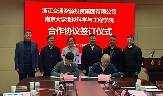 3月17日,pg电子官方网站与浙江交通资源投资集团有限公司在仙林校区签署合作协议。浙江交通资源集团党委书记、董事长周霖,集团党委委员、副总经理赵文刚,地科院党委书记董婷、院长陈天宇以及双方代表共同出席签约仪式。会议由董婷书记主持。