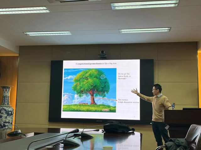 2023年12月27日,加拿大康考迪亚大学建筑土木与环境系李标副教授应邀来访pg电子官方网站,并在朱共山楼A205会议室举行了一场精彩的主题学术报告,报告题目为“Multiphysical poromechanics for geo-energy and geological engineering(多物理场孔隙介质力学在地质能源与地质工程应用)”。在报告会后,李标副教授与研究院部分师生进行了深入的学术交流,并参观了大地感知多源多场监测示范站。