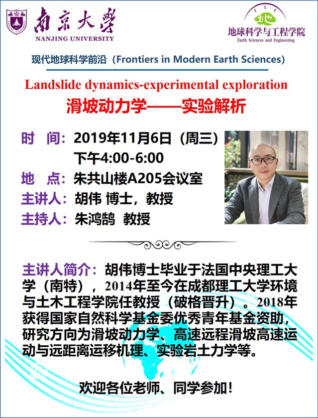 2019-11-6 成都理工大学胡伟教授报告:滑坡动力学——实验解析