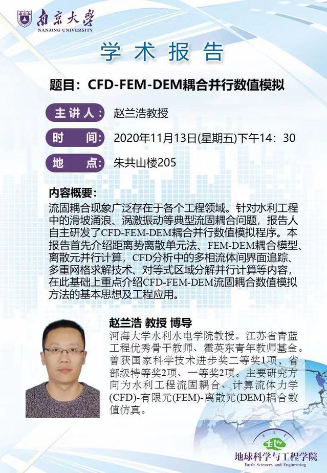 2020-11-13 河海大学赵兰浩教授报告:CFD-FEM-DEM耦合并行数值模拟