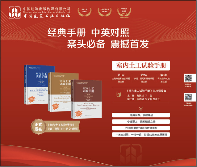 10月29日,《室内土工试验手册》(第三版)(中英文对照)在武汉“第十四届全国土力学及岩土工程学术大会”上隆重发布。该书原版由英国学者K.H.黑德和R.J.埃普斯合著,是一套全面介绍室内土工试验的经典手册。浙江大学梅国雄教授和浙大城市学院丁智教授召集国内外20余所高校、50余位学者,共同参与该手册的翻译和审校工作。pg电子官网朱鸿鹄教授担任丛书译委会副主任,并主持编译了第一卷“土的分类和击实试验”,张诚成、程刚两位老师亦参与第一卷的编译工作。