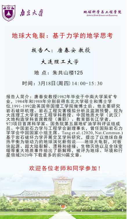 2021-3-18 大连理工大学唐春安教授报告:地球大龟裂:基于力学的地学思考