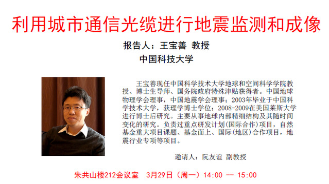 2021-3-29 中国科学技术大学王宝善教授报告:利用城市通信光缆进行地震监测和成像