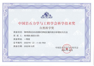 ▌ 2022/10 中国岩石力学与工程学会自然科学一等奖,降雨诱发多失效模式滑坡定量风险分析理论与方法