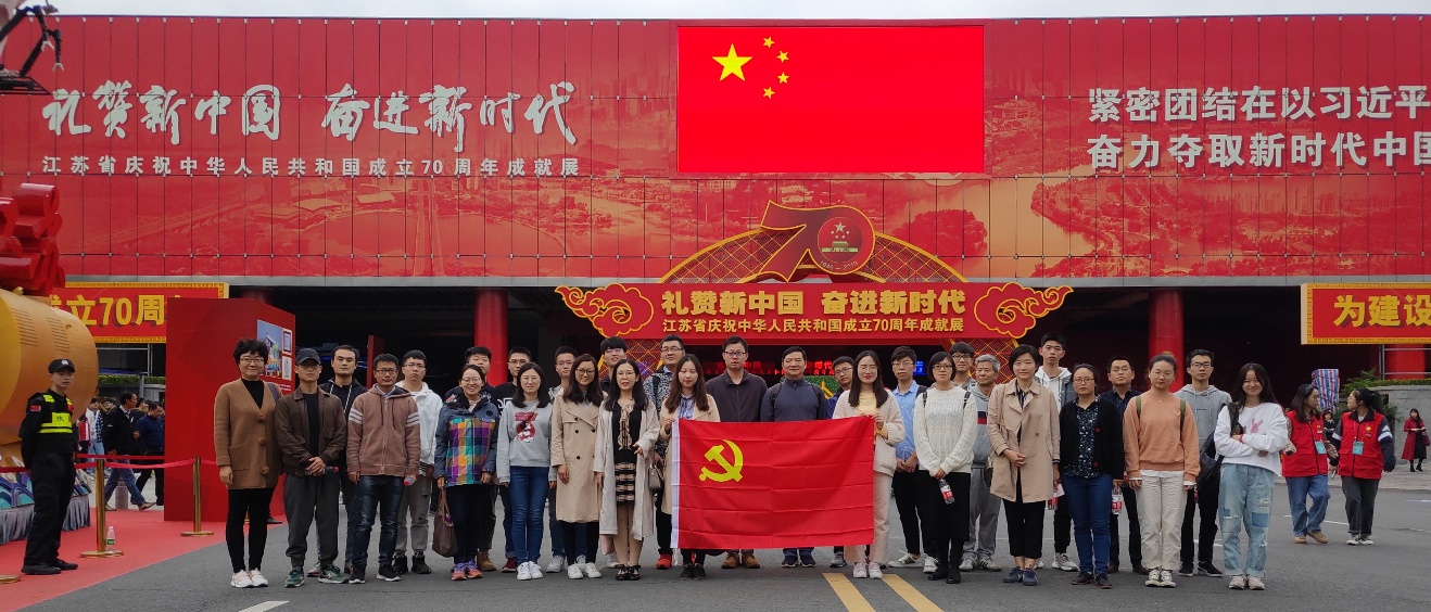 为贯彻落实校党委在“不忘初心、牢记使命”主题教育中认真学习党史、新中国史的要求,不断增强pg电子官网师生守初心、担使命的思想和行动自觉,作为pg电子官网“不忘初心、牢记使命”主题教育的重要活动之一,10月16日下午,pg电子官方网站党委组织院主题教育领导小组成员、党支部书记、发展对象等前往南京国际博览中心,参观“礼赞新中国,奋进新时代——江苏省庆祝中华人民共和国成立70周年成就展”。