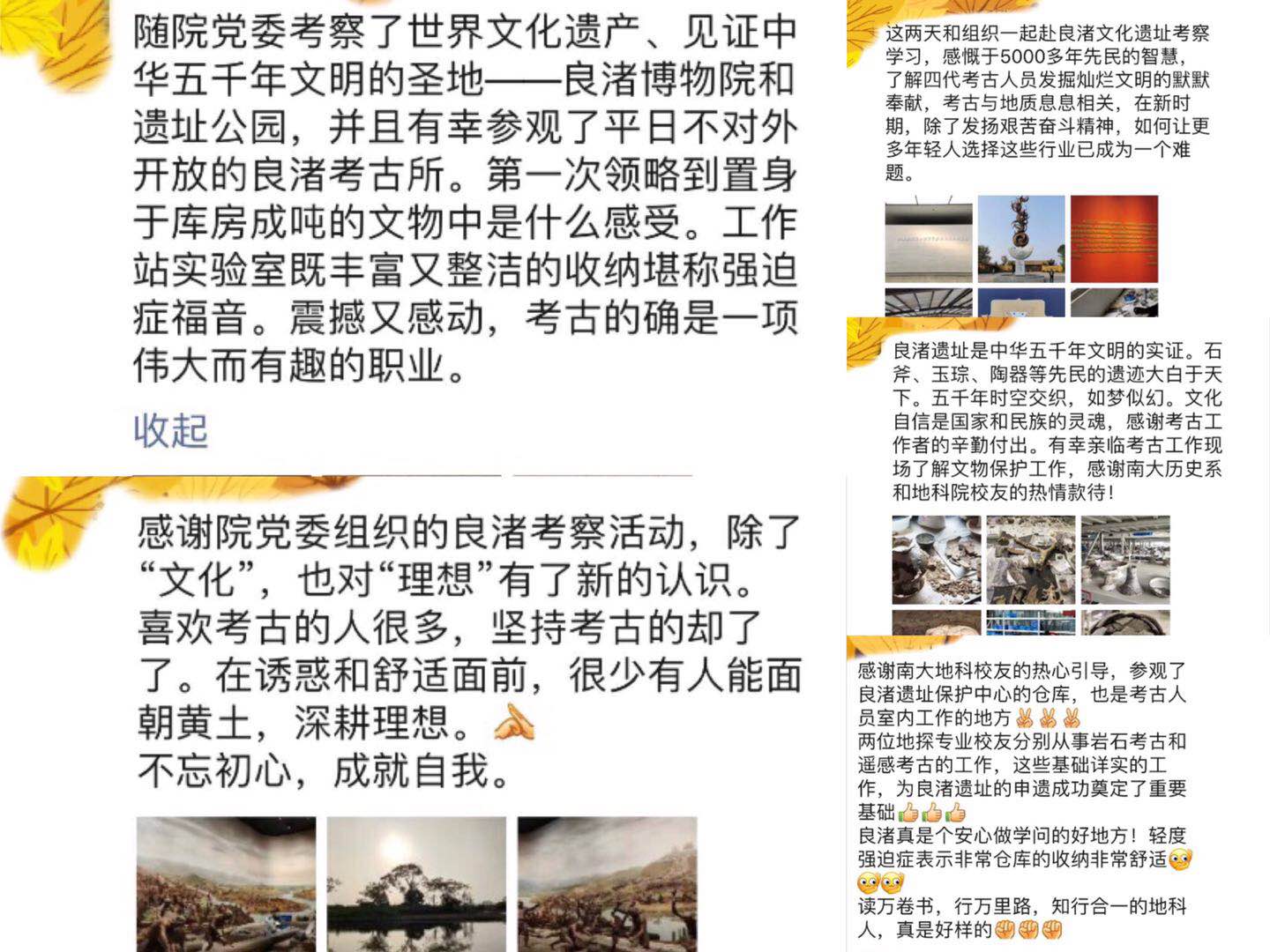 从习总书记一句“良渚遗址是证实中华五千年文明史的圣地,是不可多得的宝贵财富,我们必须把它保护好”,到良渚古城正式申遗成功,其间有太多考古工作人员以及跨学科研究人员的努力。此次考察学习让每位党员同志都切身体会到中华民族上溯五千年就已经展现出的凝聚力和匠人精神,古人不仅克服恶劣的自然环境并择优而用在沼泽之上建立起宜居的新家园,还在纯人力劳动下创造出当下机器都难以复刻的精美艺术品,这样的璀璨遗宝是中国的文化宝库,也是世界的文化宝库。本次考察还深刻体会到科技考古中学科交叉的重要性,更加感受到习总书记关于“考古学界要会同经济、法律、政治、文化、社会、生态、科技、医学等领域研究人员,做好出土文物和遗址的研究阐释工作,把我国文明起源和发展以及对人类的重大贡献更加清晰、更加全面地呈现出来,更好发挥以史育人作用”的重要性,更加坚定“四个自信”和落实立德树人根本任务的责任。