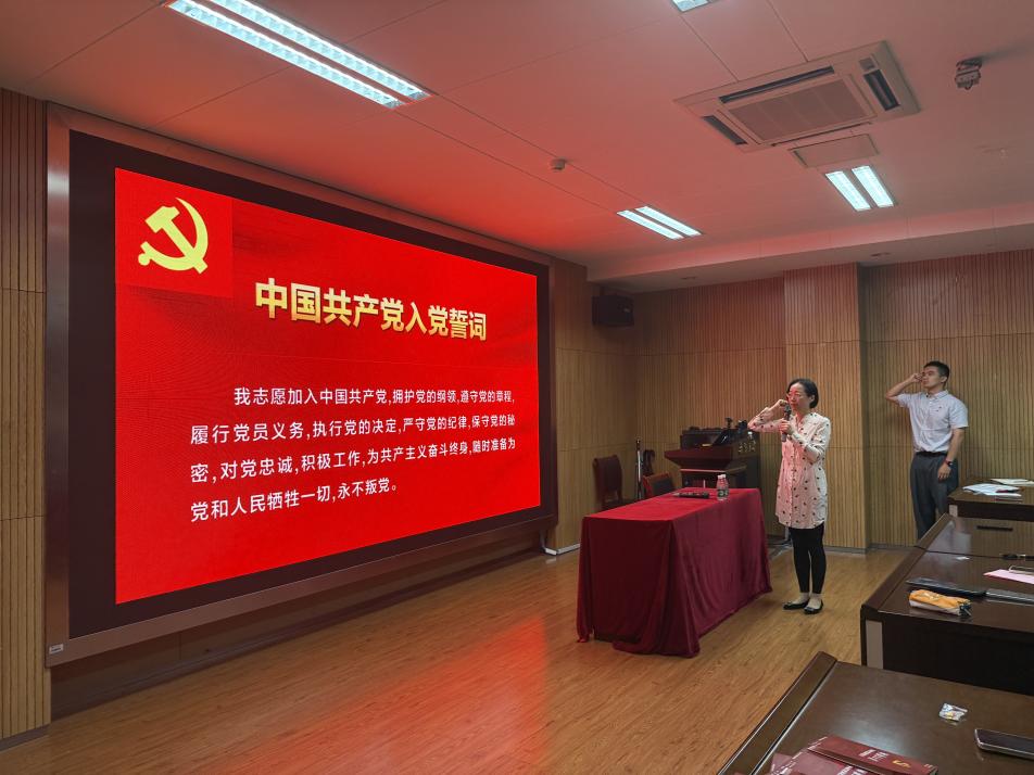 大会最后,全体毕业生党员在领誓人董书记的带领下,面向鲜红的党旗,重温入党誓词。