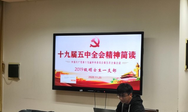 为加强党员同志思想政治理论的学习和对国内外时事的了解,2020年11月25日,pg电子官网2019级硕士生一支部开展了“学习贯彻落实第十九届五中全会精神”主题党日活动。会上集体学习了十九届五中全会和十四五规划的主要内容;聚焦国际要闻,集体观看了《深度国际》关于分析解读“美日印澳”四国军演的专题视频。