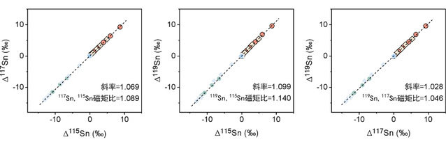 学界已认识到硫、汞等元素的同位素具有非质量分馏效应,并已将其广泛应用于研究早期地球环境、行星过程、物质循环等重大问题。硫和汞同位素的非质量分馏效应主要出现于奇数的磁性同位素(如33S,199Hg,201Hg),前人研究也发现锡的磁性同位素有非质量分馏效应,但关于锡的磁性同位素的非质量分馏效应机理存在争议。法国巴黎地球物理研究所Moynier教授团队提出“核体积效应”说,英国国家计量实验室的Malinovsky博士提出“磁同位素效应”说,日本的Fukami博士等人则主张“磁同位素效应”和“核体积效应”同时存在。前人的工作均基于非自然条件的特殊室内实验,因此虽然观察到锡同位素非质量分馏效应,但无法直接应用于天然样品研究。