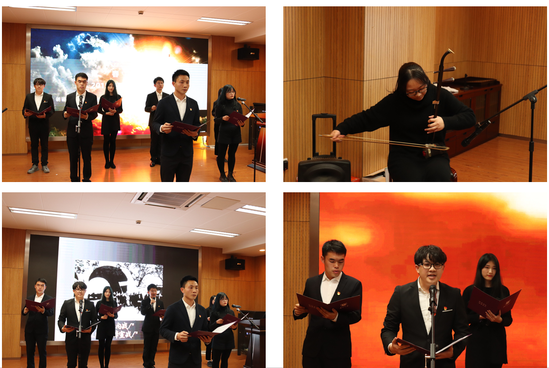 透过历史的眼眸,站在岁月的肩膀上远眺。回想那些历史,是书不尽的血与火。崭新的未来,要由青年一代去开创。博士生二支部六名着装整齐的同学回望过去,带着对未来的期望,带来题为“忆峥嵘岁月,书时代华章”的朗诵,希望能够不忘初心,砥砺前行。