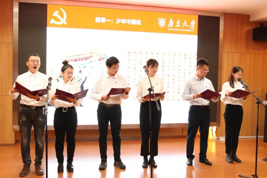 这是19级硕士一支部的七名队员发出的声音,他们是兢兢业业的科研探索者,是发挥先锋模范的共产党员。他们带来题目为:“青春中国”的朗诵。