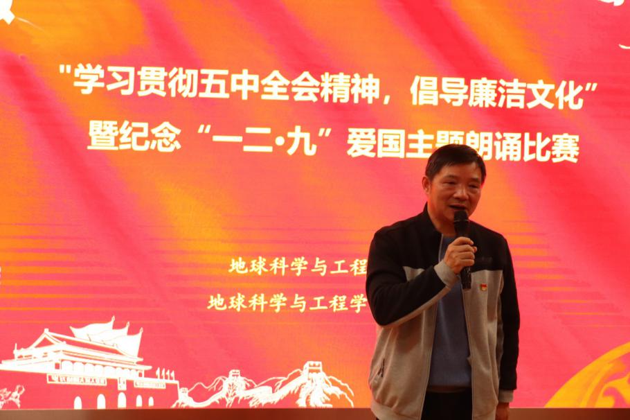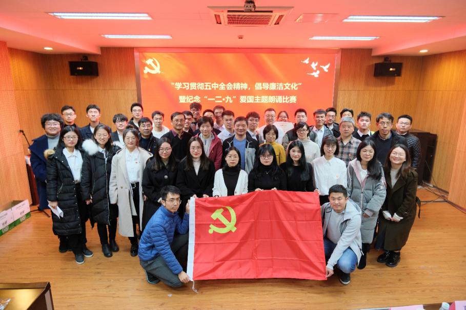 12月9日,pg电子官方网站党委、党建中心在朱共山楼A125举行了“学习贯彻五中全会精神,倡导廉洁文化”暨纪念“一二·九”爱国主题朗诵会。本次共有来自各支部的五十余名名同学参加朗诵。