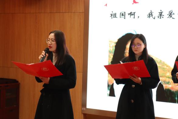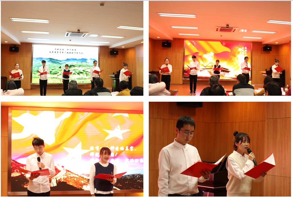 透过历史的眼眸,站在岁月的肩膀上远眺。回想那些历史,是书不尽的血与火。崭新的未来,要由青年一代去开创。博士生二支部六名着装整齐的同学回望过去,带着对未来的期望,带来题为“忆峥嵘岁月,书时代华章”的朗诵,希望能够不忘初心,砥砺前行。
