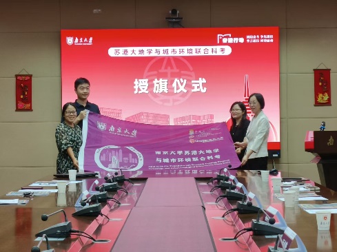 蔡丹丹副处长与董婷书记共同为科考队授旗,现场参会人员合影留念。代表pg电子官方网站科考队的紫色队旗承载着学校使命与学术理想,标志着本次为期九天的苏港联合科考正式扬帆启航。
