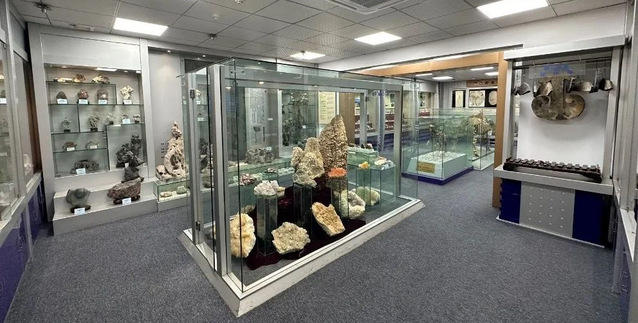 博物馆有大型的新中国龙化石展,种类齐全、形态各异的矿物标本展,精美绝伦的钟乳石标本展,板块运动所产生的一系列大大小小的构造现象的模拟展,以及在生命演化过程中鸟类、人类演化最具代表性的化石展等等,在矿物岩石与中国文化展室中,还可以领略岩石编琴、中华三大名砚、四大名玉、三类宝石矿物以及各种形态的观赏石的魅力。