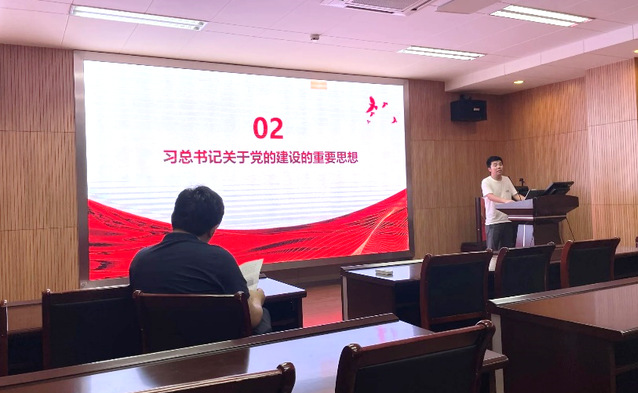 会议的第一项议程为支委成员带领全体同志集中学习相关文件精神,认真学习领会习近平总书记的一系列重要思想,为后续议程打牢思想基础。首先由支部书记张猛龙同志领学习近平总书记关于党的建设的系列重要思想。张猛龙同志从这一系列重要思想的形成背景讲起,随后具体讲解了全国组织工作会议上正式提出和系统阐述的“十三个坚持”内容,并总结了其重要意义。而后由支部宣传委员王敬朝同志领学习近平总书记关于以学铸魂、以学增智、以学正风、以学促干等重要论述,他首先讲解了主题教育活动的根本任务,并随后以习近平总书记在四地考察调研时的重要讲话对四项内容进行展开介绍。最后由支部组织委员李雯雯同志领学习近平总书记关于高等教育的重要讲话,这一讲话是习近平总书记于2016年12月全国高校思想政治工作会议上所作,就高校思想政治工作的根本问题、中心环节等关键问题进行阐述,明确了以立德树人作为教育的根本任务并贯穿学校教育和人才培养的各个环节,并就如何扎实办好中国特色社会主义高校的四个服务、四个坚持不懈、四个正确认识、三因三遵循等内容展开说明。