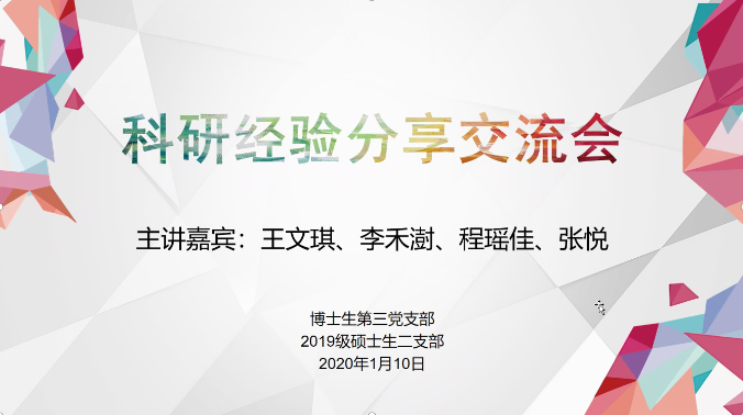 博士生三支部与2019级硕士生二支部开展“科研经验分享”联合党日活动