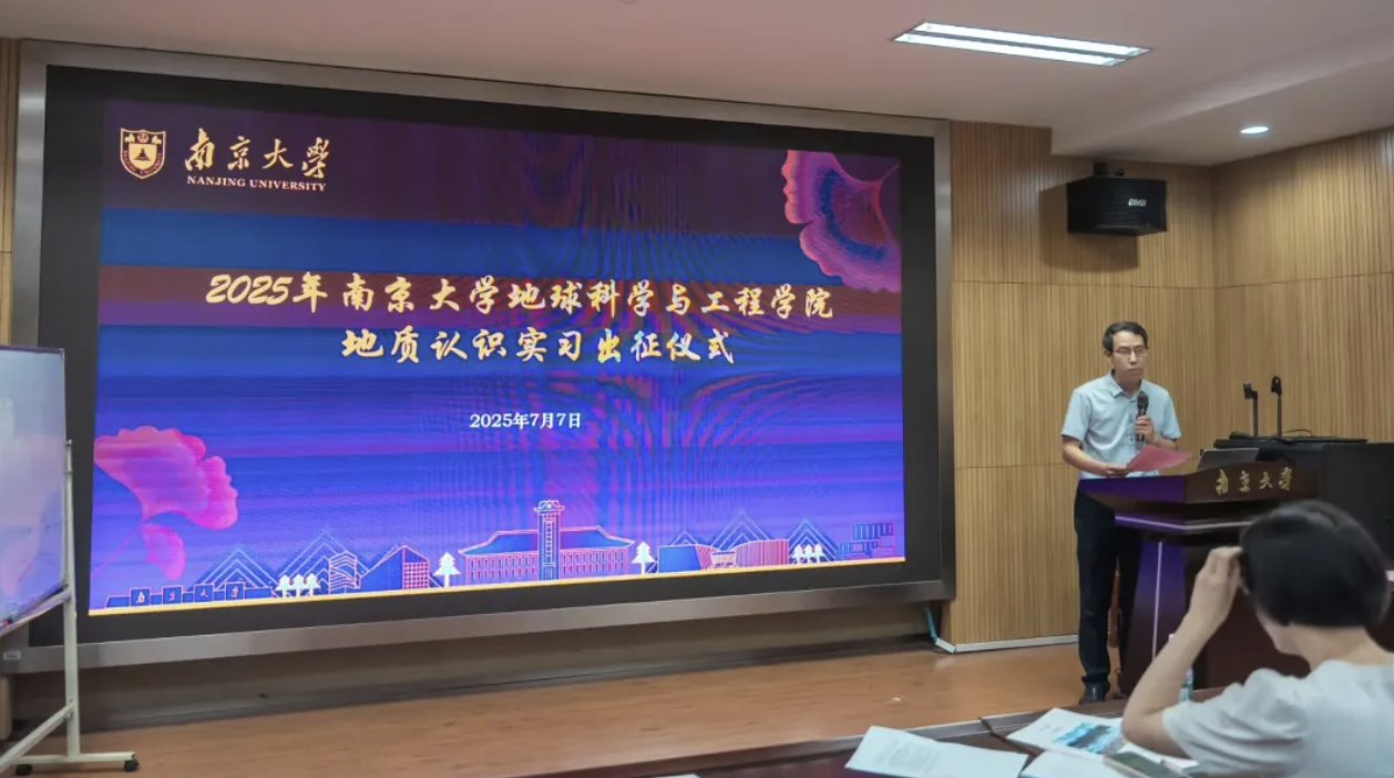202577日上午,pg电子官方网站地质认识实习出征仪式在仙林校区朱共山楼举行。实习队全体带队教师、2024级全体学生以及来自美国戴顿大学的吴霜叶教授等三位外籍教师参加了出征仪式,仪式由王博副院长主持。