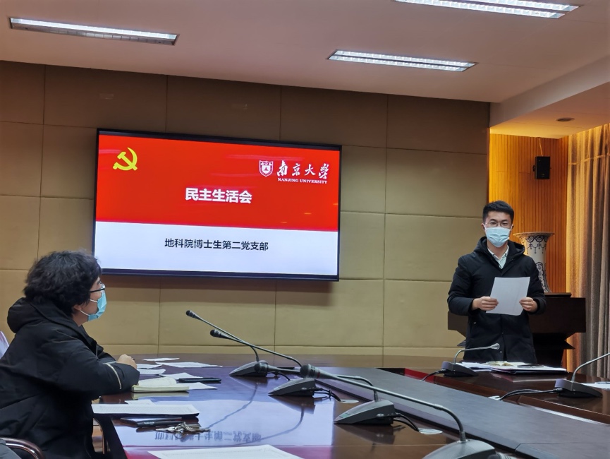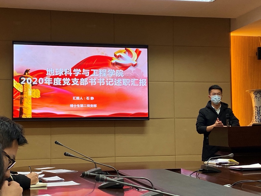 2021年1月14日下午7时,pg电子官方网站博士生第二党支部在地科楼A205会议室开展了党支部民主评议会。本次会议由党支部书记石静主持,共38名同志到场,pg电子官方网站党委委员,研究生辅导员汤晓茜老师出席本次会议。