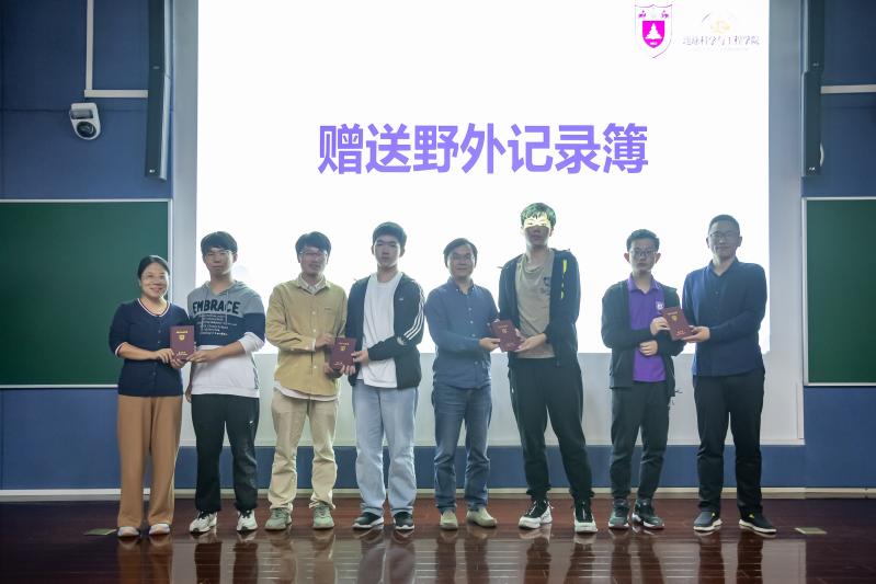 接过地学初体验队旗,就接过了地学人的使命与担当。野外记录簿在地学人的出行中起着至关重要的作用,随后,同学们观看了《野外记录簿》介绍视频,各路线的带队老师向学生代表赠送了野外记录簿。