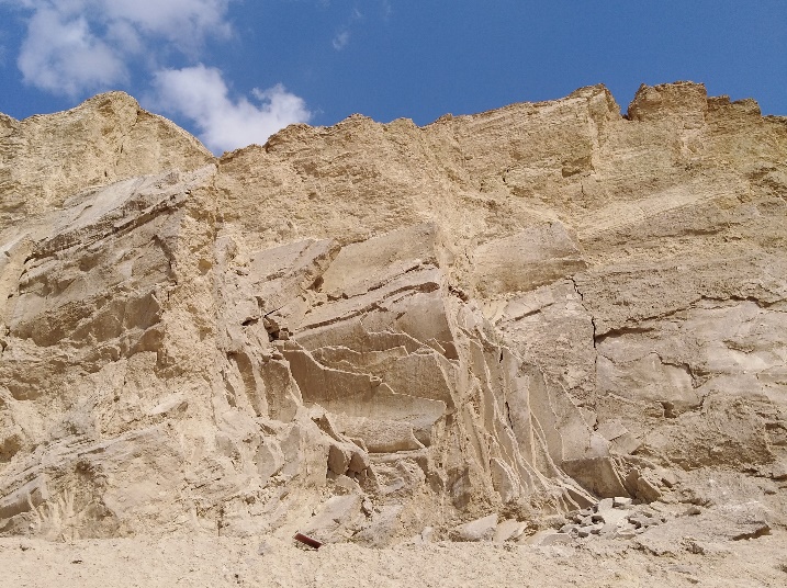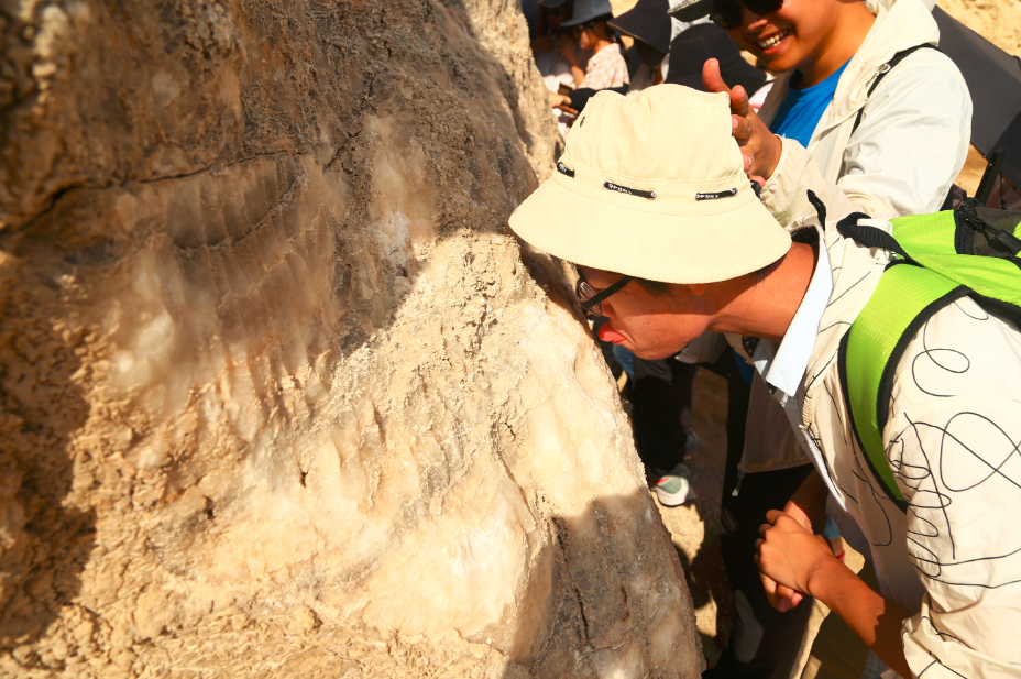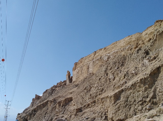 第二天一早,我们并没有直接前往海滩,而是来到了死海南部的一座盐丘的脚下。它几乎完全是由盐(NaCl)组成的。山的下部地层近乎直立,而上部地层水平。这是由于地下应力的作用,下层高塑性的岩体向上流动并推挤插入上覆岩层,这种作用被称为底辟作用。