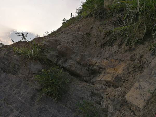 接着,同学们登上剖面实地考察两个金钉子剖面的情况,剖面上长兴组的石灰岩,向殷坑组的泥岩的转变见证了这一地区的海陆变迁,在那些其貌不扬的岩石下面竟然隐藏着300多种二叠纪古生物的化石,这让同学们不禁深深感到地质学的博大精深。在年代地层界限处,那层薄薄的几厘米厚的火山灰竟然见证了二叠纪晚期生物界百分之九十六的生物种灭绝,令同学们感到十分震撼,并了解到了地质研究需要细致与耐心。
