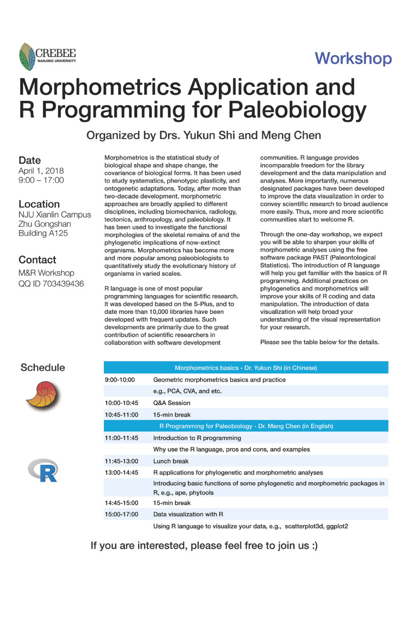 "Morphometrics application and R programming for Paleobiology" Workshop