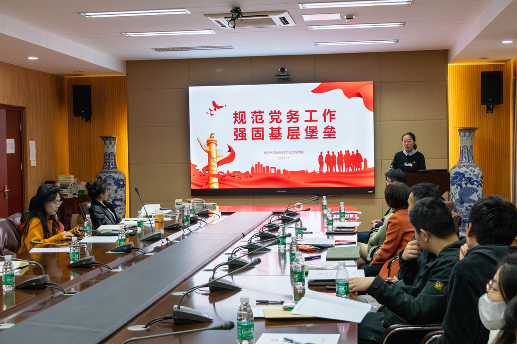 随后,地科院党建工作组组长、22级硕士生一支部书记齐振楠以“规范党务工作,强固基层堡垒”为主题分享了自己的党务工作经验和见解。她首先介绍了党务工作及党支部的相关知识,强调“三会一课”制度是党的基层支部长期坚持的重要制度,也是健全党的组织生活,严格党员管理的重要制度。此外,她向各党支部介绍了开展党支部党员大会的准备工作、基本程序。最后,详细介绍并演示了pg电子官方网站智慧党建管理服务平台的操作流程。