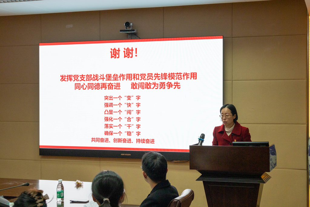 会议伊始,董婷指出本次培训内容全面围绕党支部的标准化规范化建设开展,对全面提升党支部组织力,强化党支部政治能力,充分发挥党支部战斗堡垒作用具有重要意义。同时,她鼓励学院的党支部书记、支部委员及党员骨干通过本次培训努力提高自己的党务工作能力,在日后的党务工作中投入更多的热情和耐心。