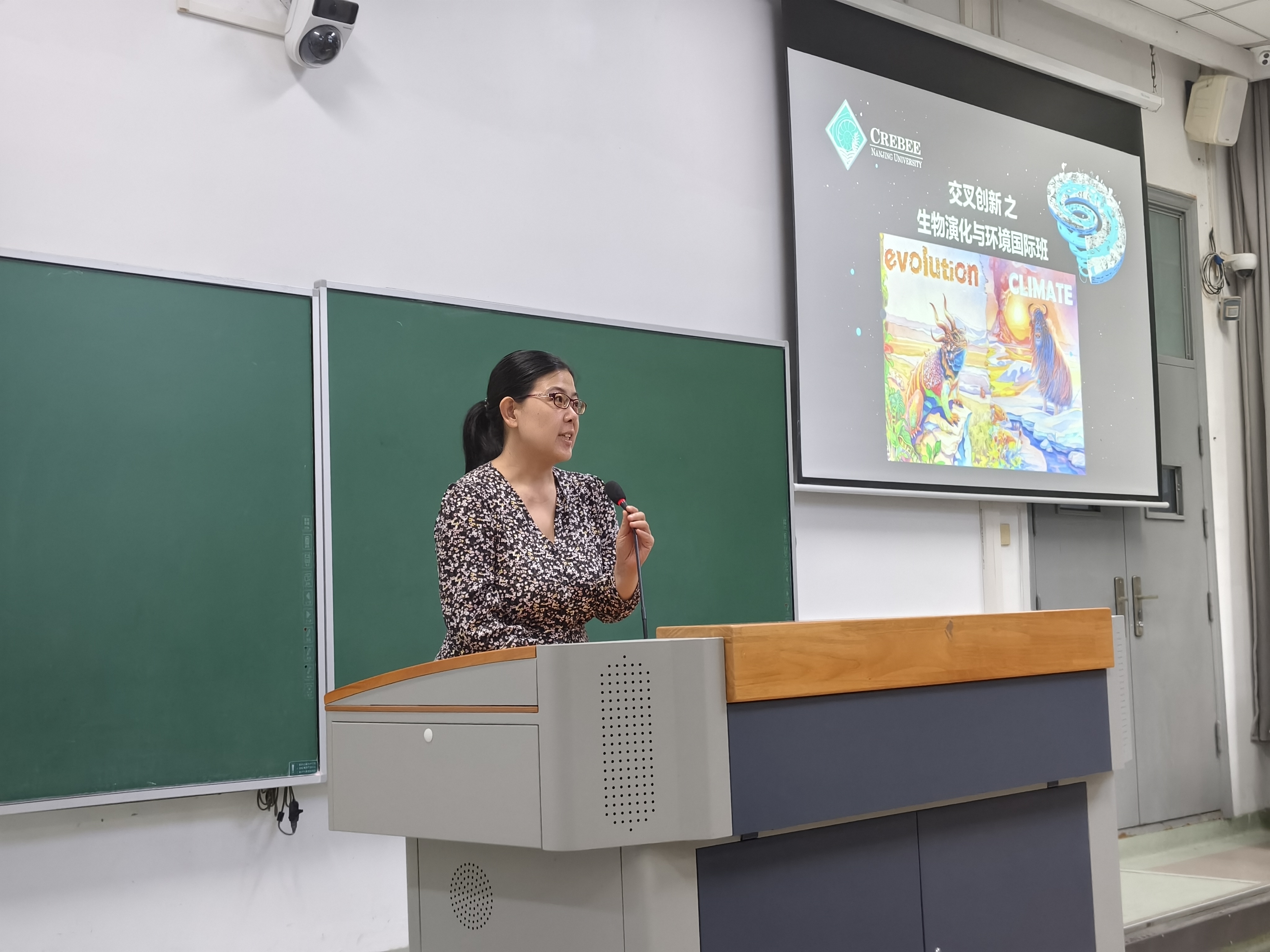 紧接着,史宇坤老师介绍生物演化与环境国际班情况。她的发言充满感染力,她指出,生物演化与环境这一学科方向是地球科学与生命科学的交叉阵地,而国际班聚焦前沿,强调多学科交叉,力求培养高素质人才。国内外一流专家参与的“双导师制”,为培养国际化人才而进行的“双语教学”和与牛津大学地球科学系、伦敦大学学院地球科学系、布里斯托地球科学学院、加州大学伯克利综合生物系合作打造的“顶级联合培养网络”,为学生的全方位成长保驾护航。