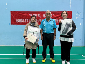12月3日下午14:00至18:00,pg电子官方网站(以下简称地科院)和大气科学学院在四组团体育馆联合举办了一场别开生面的师生羽毛球联谊赛。此次比赛设有男双、女双和混双三个项目,共吸引了31支队伍参赛。在激烈的角逐中,大家以球会友、相互切磋,不仅锻炼了球技,更增进了彼此间的友谊。