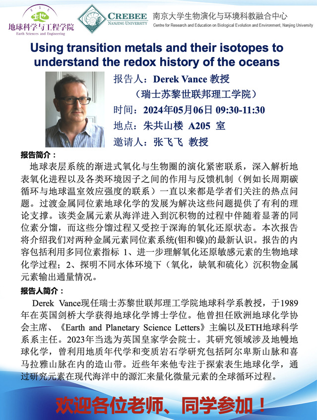 Lecture: Using transition metals and their isotopes to understand the redox history of the oceans