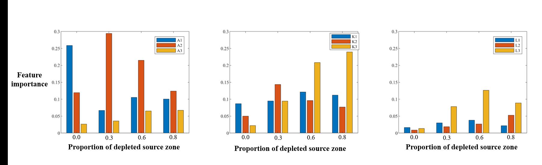 The contaminant mass flux is controlled by the organic contaminant source zone architecture. Since there is a highly nonlinear relationship between the contaminant source zone architecture and the downstream mass flux of the dissolved plume, it is difficult to explicitly represent this relationship by physical laws. The complex relationship between contaminant source and dissolved plume still needs to be clarified. Previous studies have only explored the qualitative relationship between the two, making it difficult to quantitatively characterize the nonlinear multi-stage dissolution behavior of the organic contaminant source zones, and there is a lack of accurate predictive models to simulate this non-monotonic dissolution process.