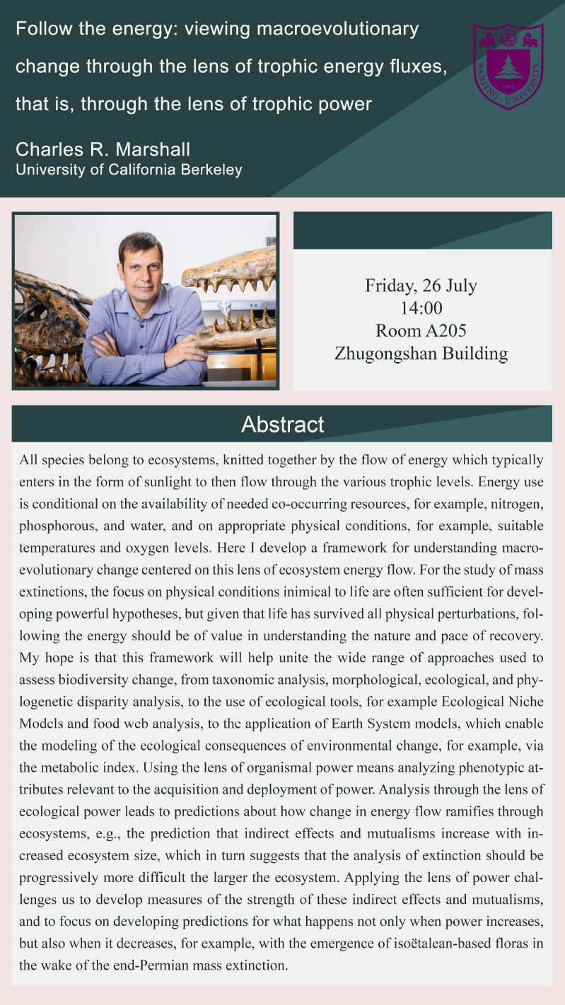 Lecture: Follow the energy: viewing macroevolutionary change through the lens of trophic energy fluxes. that is, through the lens of trophic power