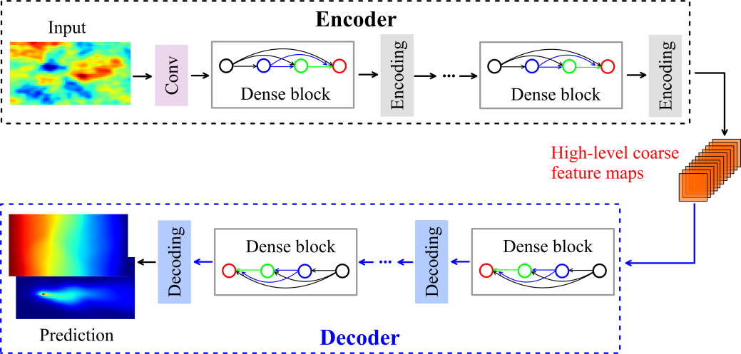 pg电子官网吴吉春教授和施小清教授团队与美国圣母大学Nicholas Zabaras教授合作,提出了一种深度卷积编码-解码网络(deep convolutional encoder-decoder network)方法来构建深度神经网络替代模型(surrogate model)。与传统机器学习方法不同,该方法创新地将非均质介质场和模型响应输出场作为图像,利用卷积神经网络强大的图像数据处理能力去解决“维度约束”问题,进而通过替代模型显著地节约计算消耗。通过求解一个参数维高达2500维的CO2地质封存多相流模型不确定性分析问题以及一个686维的地下水污染源识别问题验证了所提出方法的有效性和稳健性,该方法能够精确高效地刻画地下水多相流模型和污染物运移模型的高维输入-输出场的函数关系,有效地解决了“维度约束”这一瓶颈。